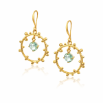 Elevate your aura with the celestial charm of the Aura Earrings. An open circle dotted with polished golden beads surrounds a twinkling aquamarine cubic zirconia suspended at its heart. Ethereal and artistic, these earrings are perfect for the dreamer, the star-gazer, and the free spirit.