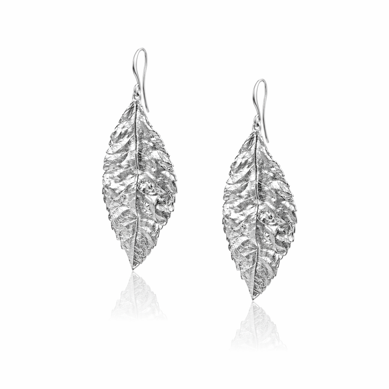 Bold yet graceful, the Laurel Silver Earrings are a tribute to nature’s timeless forms. Crafted in a rich silver tone, these earrings take the shape of intricately detailed laurel leaves, with textured veins and contours that lend depth and authenticity. Their fluid silhouette and naturalistic finish evoke strength and femininity in equal measure. A statement piece with organic charm, they are perfect for those who appreciate artistry with a botanical soul.