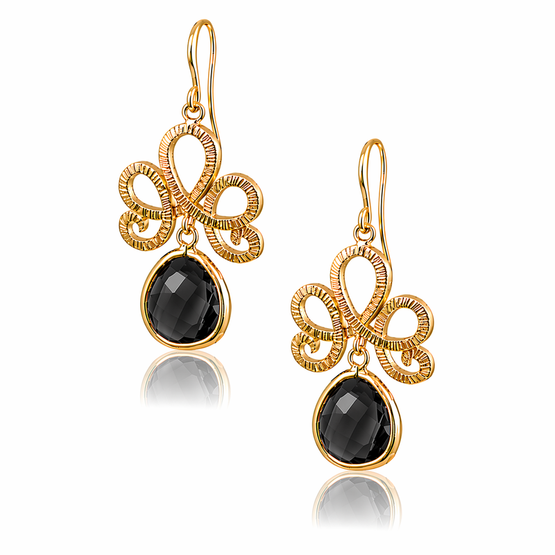 • Material: 22k Gold-plated on brass, black faceted hydro crystal