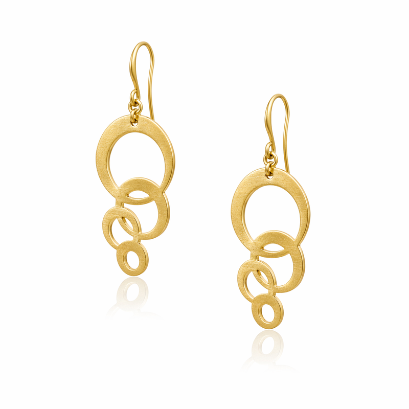 Modern and sculptural, the Nexus Gold Earrings unite balance and geometry with an artistic touch. Interlocking brushed circles create a fluid, asymmetrical design, exuding movement and intention. A bold piece for lovers of clean lines and statement simplicity.