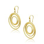 A study in texture and light, the Orbelle Gold Earrings feature concentric golden circles—each delicately etched to catch the light with every movement. Their minimalist form and raw finish offer timeless elegance with an artisan edge.