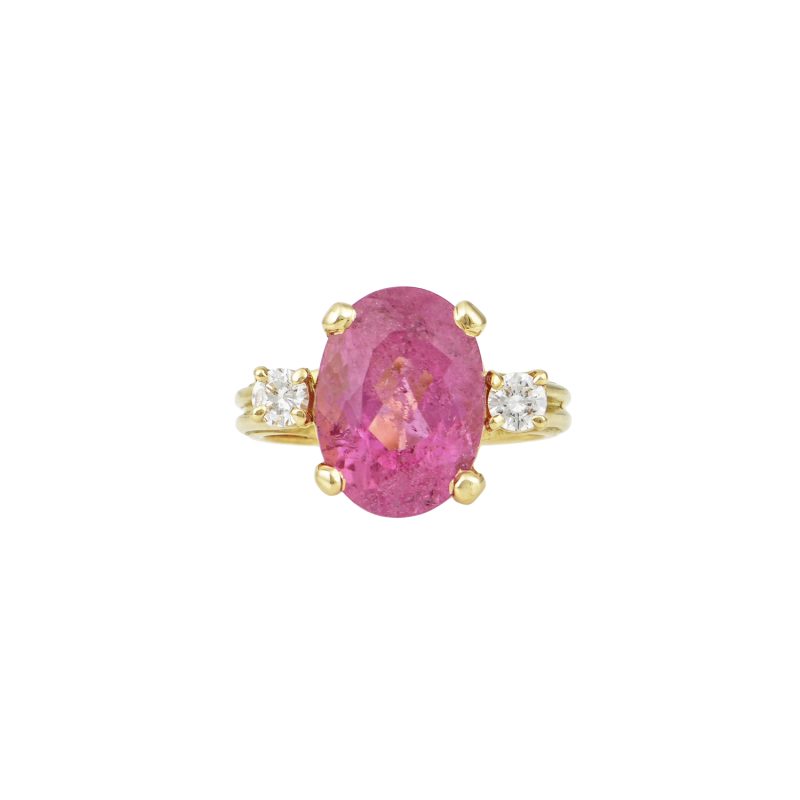 • Gemstones: Oval-cut Rubellite Tourmaline (approx. 6.4 ct) with 2 White Diamonds (total approx. 0.33 ct)