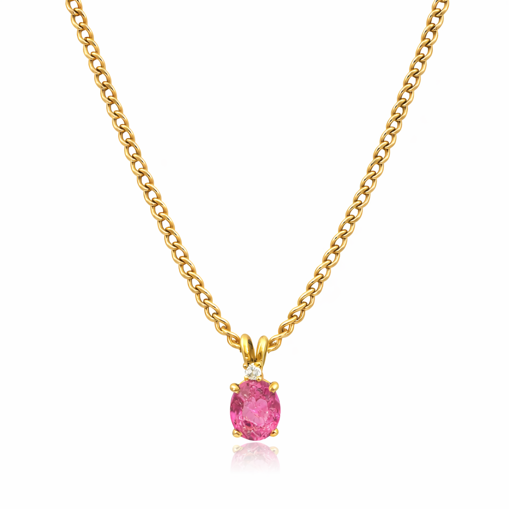 Subtle yet full of character, the Tropicália Necklace – Rubellite pairs a oval-cut pink tourmaline with a single white diamond. The pendant is set on a 50cm solid 18k gold curb chain, blending clean lines with soft color. Handcrafted with precision, it’s a versatile piece with a delicate touch of brightness.